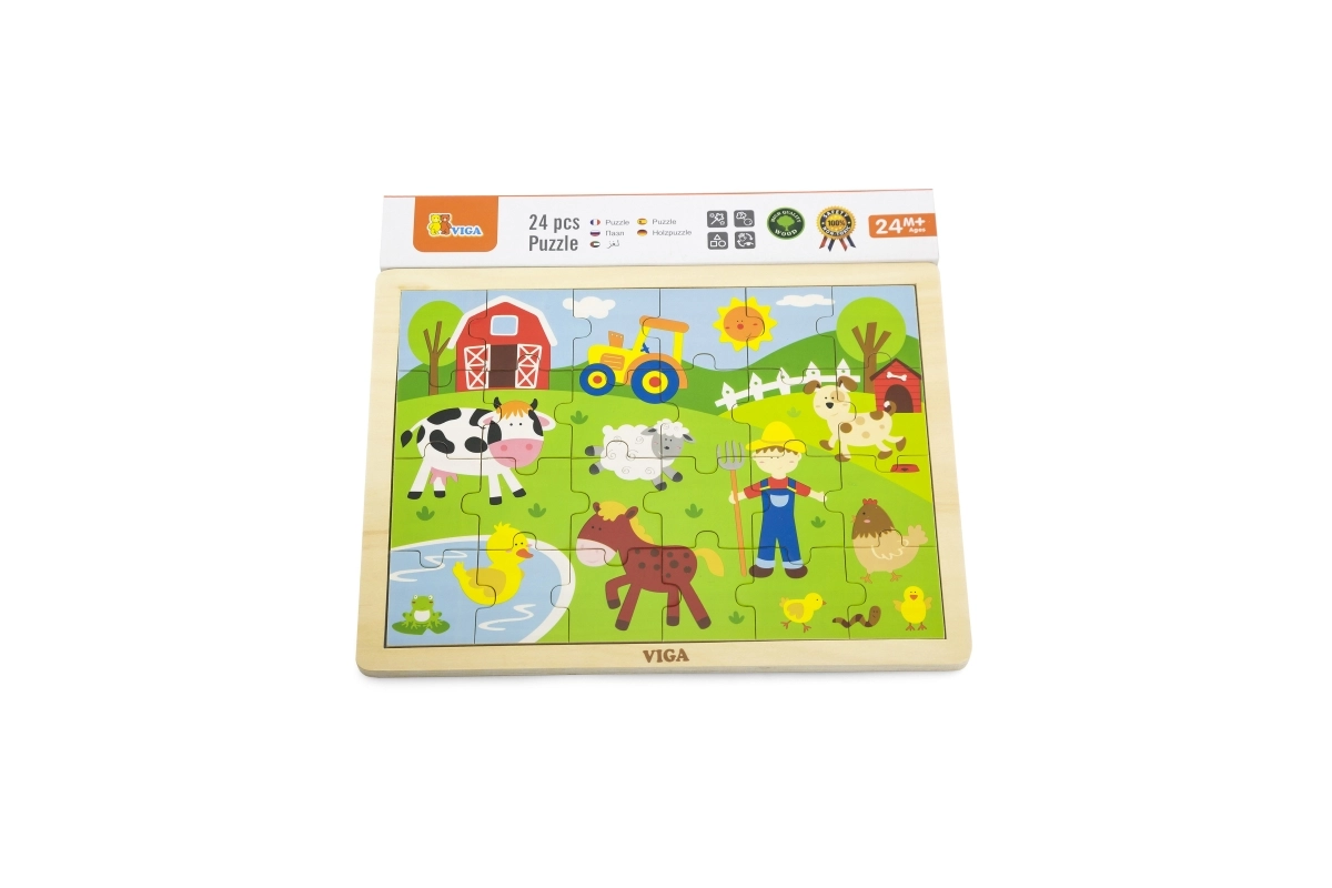 Viga дървен пъзел ферма е чудесен избор за малки деца, които искат да подобрят своите моторни умения и логическо мислене чрез подреждане на 24‑частен пъзел.
