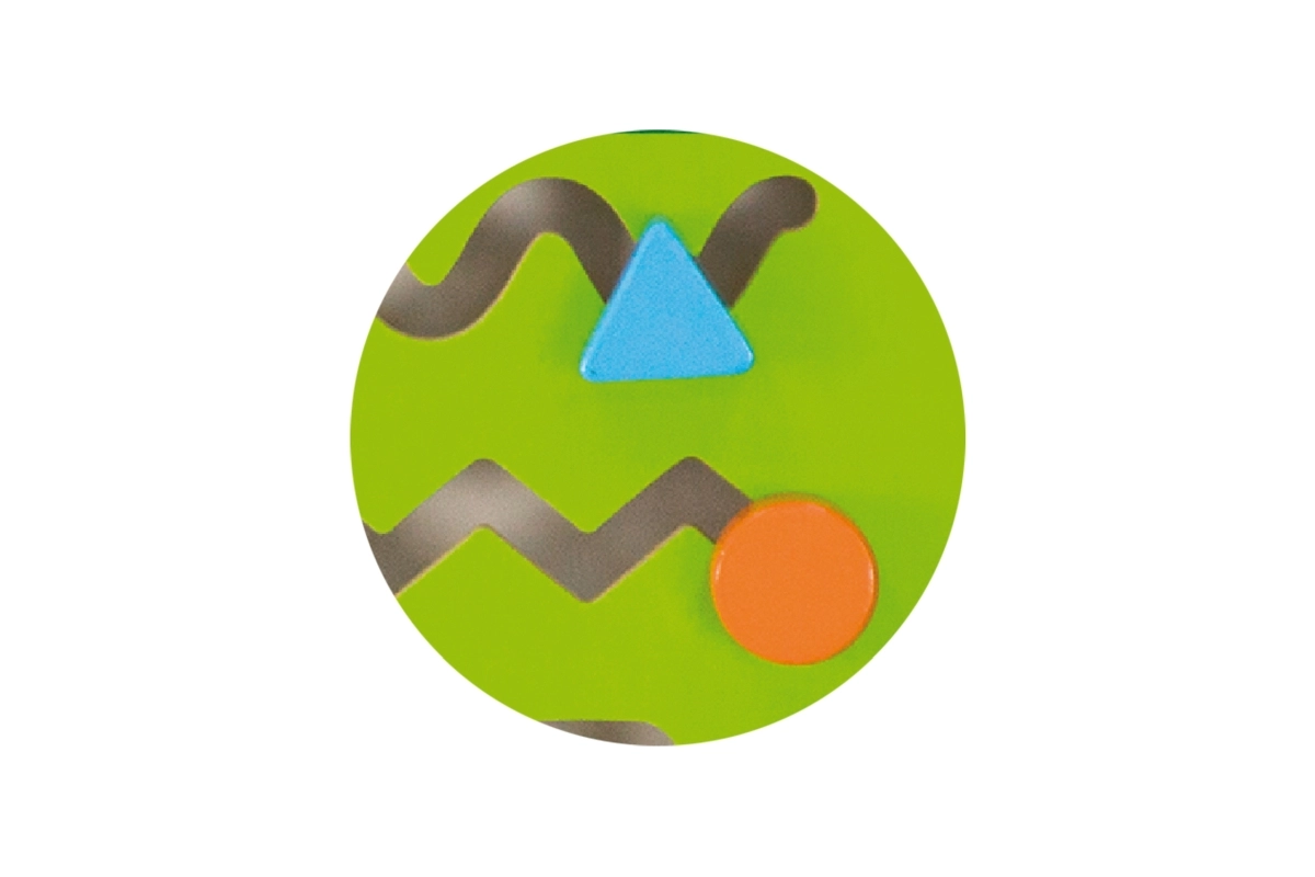 Децата преместват триъгълник, кръг и квадрат по назъбени и извити пътеки, като така тренират координация, прецизност и разпознаване на форми.