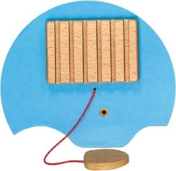 Набраздената летва издава характерни звуци при прокарване на пръчица. Децата тренират захвата, координацията и ритмичното чувство.