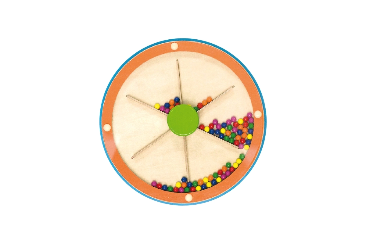 Въртящото се колело с цветни топчета стимулира зрението и слуха, подпомага концентрацията и мотивира към допълнителна интерактивна игра.