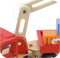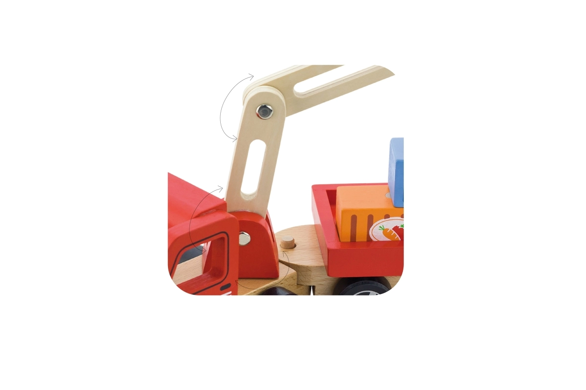 Пъстроцветният дизайн на крана с контейнери радва окото и приканва към игрива активност. Сваляемото ремарке гарантира вариативност по време на игра, което подкрепя детската креативност.