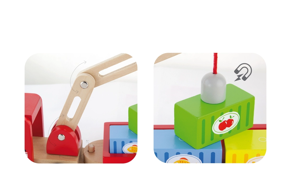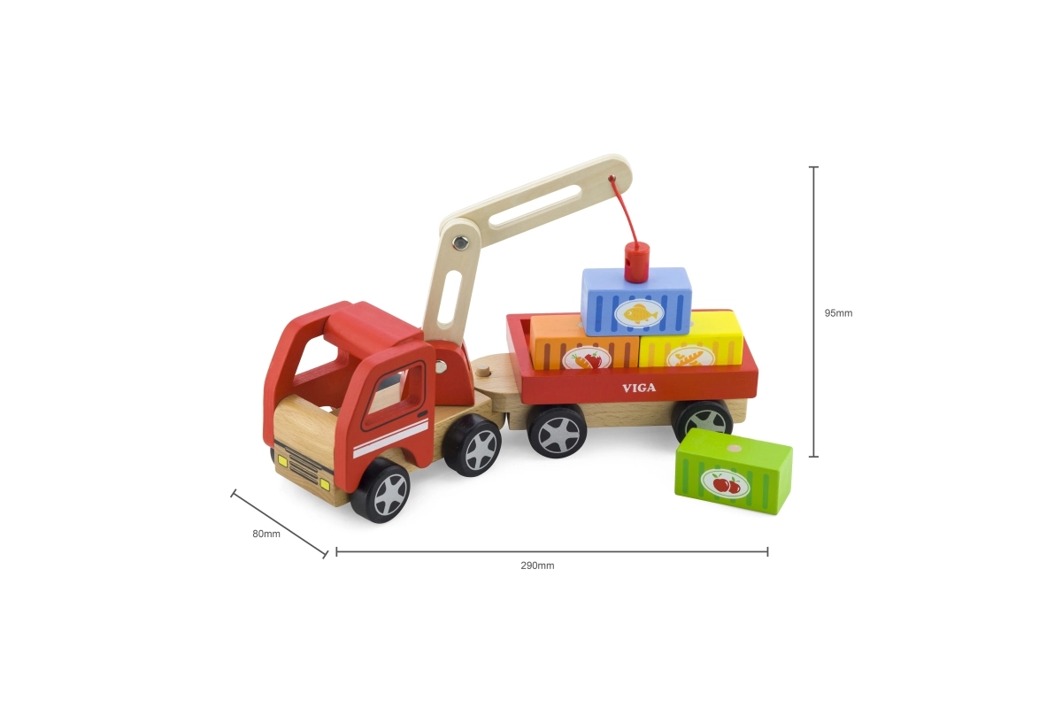 Дървеният кран VIGA с контейнери е идеална играчка както за детската градина, така и за дома. Неговото подвижно рамо и магнитните контейнери осигуряват не само чудесно забавление, но и развиват фината моторика на децата.