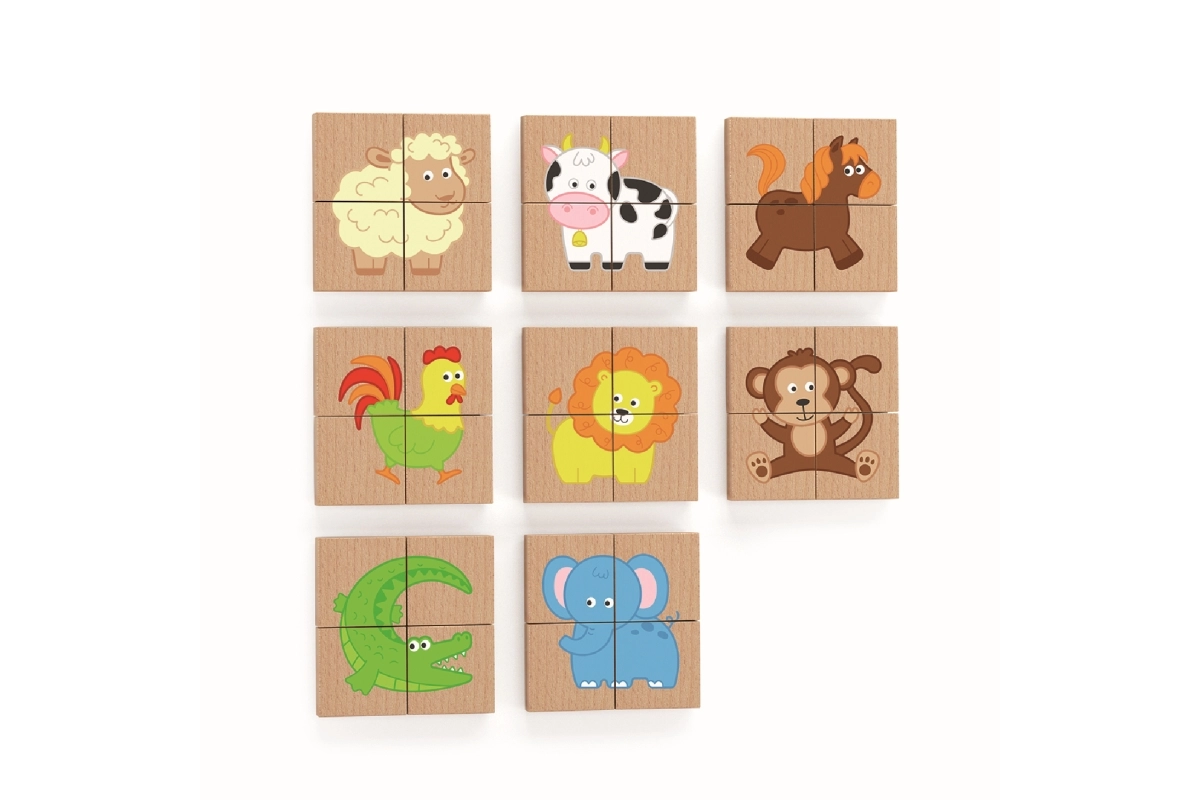 Съдържа 32 магнитни пъзела с животински мотиви, които стимулират детското творчество и ученето.