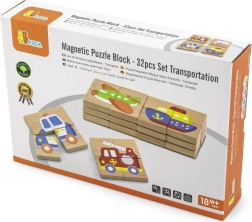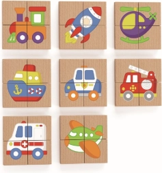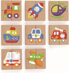 Тази впечатляваща магнитна играчка позволява на децата да подреждат изображения от 4 блокчета, които при съединяване образуват завършено превозно средство. Те лесно могат да се прикрепят към дъска и да станат част от картина или да послужат като вдъхновение за рисуване. Висококачествено дърво и нетоксични бои гарантират, че играчката е напълно безопасна за деца.