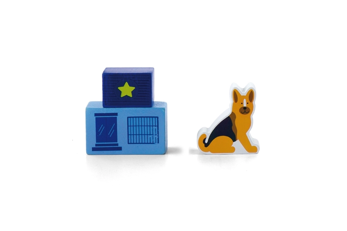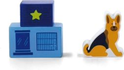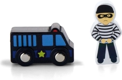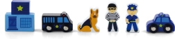 Вашите деца могат да създават собствени истории и сценарии с тези цветни персонажи, които пресъздават автентична полицейска атмосфера: от полицай до крадец и полицейско куче. Всички фигури са изработени от качествено дърво, което гарантира тяхната издръжливост и дълъг живот.