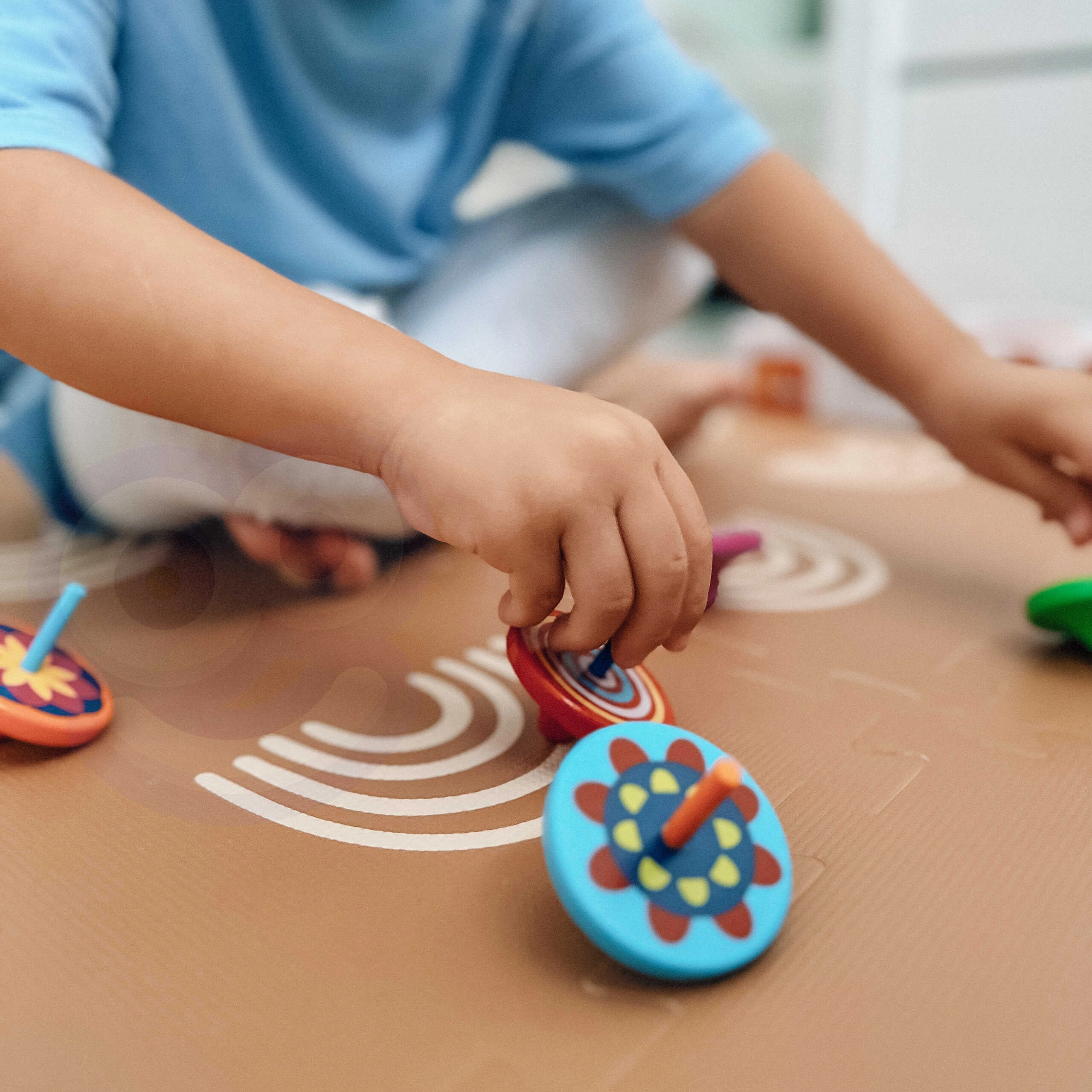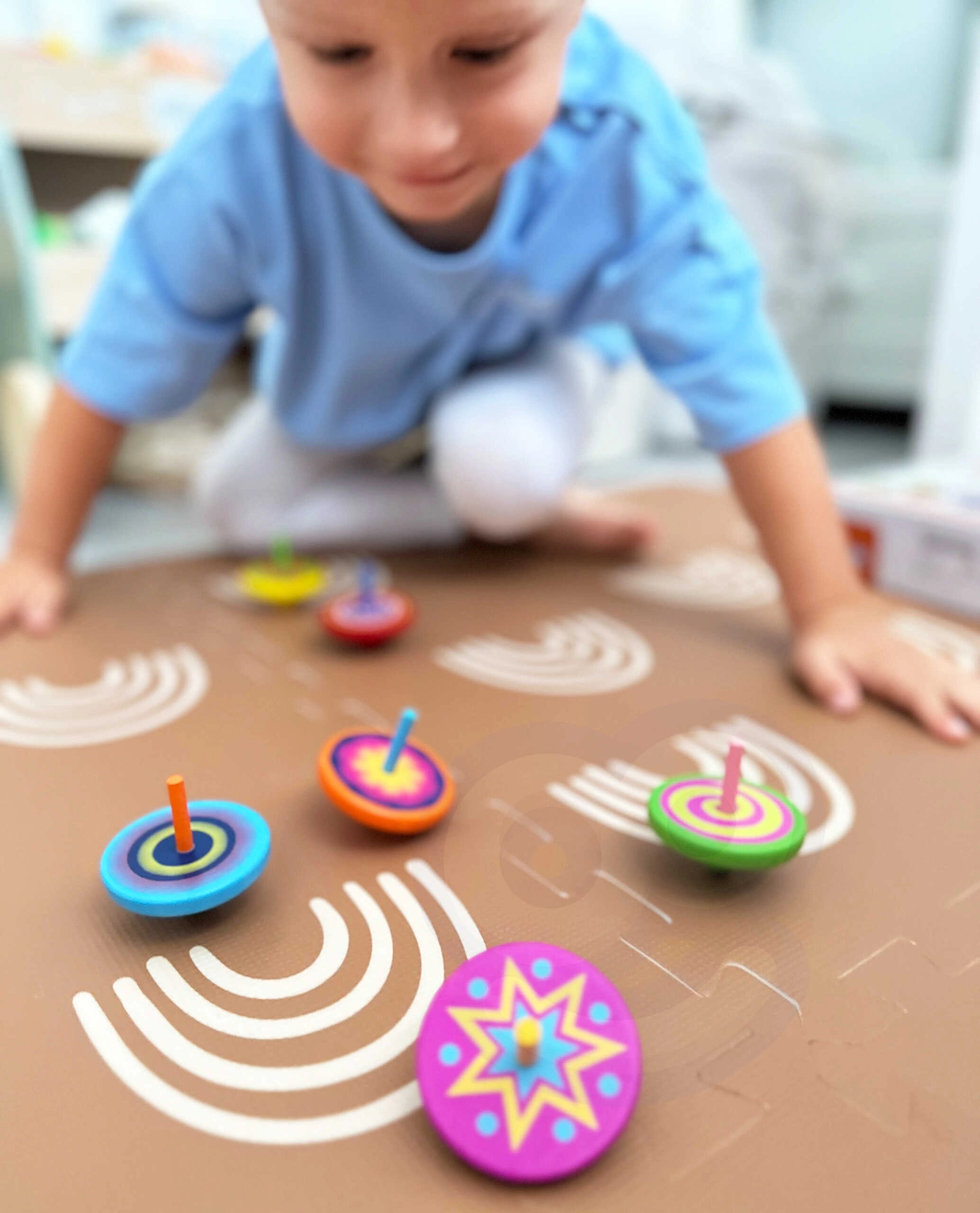 Помага на децата да разберат основни закони на физиката, като се учат за въртенето и равновесието.