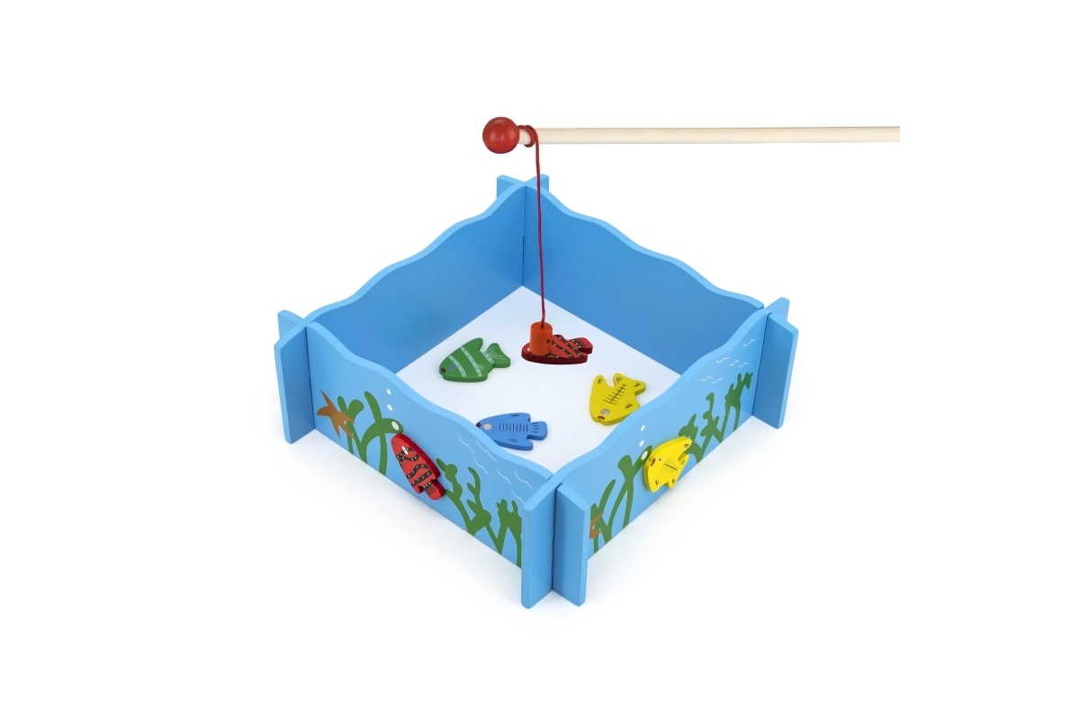 Улавянето на рибките с магнитна въдица тренира прецизност, търпение и координация. Цветните рибки мотивират към многократна игра.