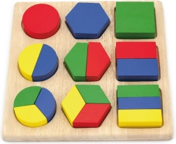 Поставянето на формите в правилните отвори тренира координацията око-ръка, търпението и логическото мислене.