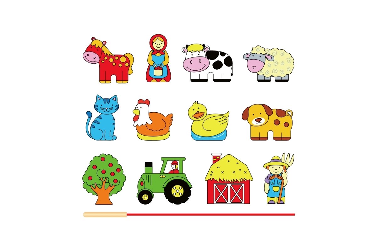 Забавлението върви ръка за ръка с ученето, докато детето играе и по увлекателен начин се запознава с живота на фермата и животните, които живеят там. Всички части са изработени от лакирано дърво и боядисани с нетоксични бои, които осигуряват безопасна и радостна игра.