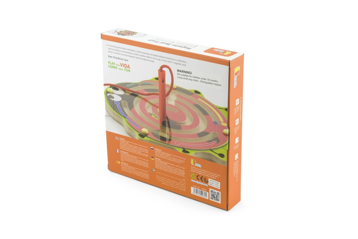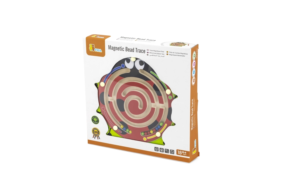 Този качествен дървен магнитен лабиринт калинка предлага на децата цветен свят на откривателство. С включената магнитна писалка те придвижват топчетата по добре замислени пътеки, като по естествен начин укрепват захвата, тренират координацията око–ръка и подобряват концентрацията. Здравата дървена конструкция и затвореният дизайн гарантират безопасна игра без свободни части.