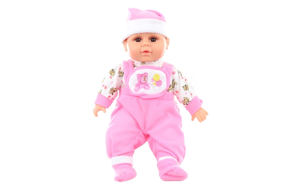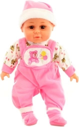 Очарователно звучащо бебе с меко телце, което ще зарадва всеки малък грижещ се. При натискане на телцето издава реалистични звуци – смях, плач, „мама“ и „тати“. Облечено е в розова пижамка с велкро за лесно събличане и обличане. Идеално за имитация на грижа и развитие на фината моторика.
