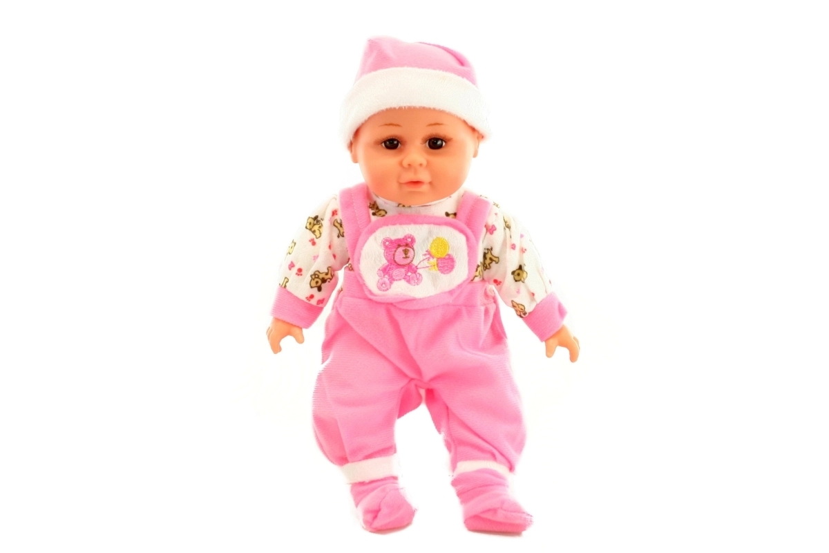 При натискане на телцето бебето издава звуци на смях, плач и казва „мама“, „тати“, което насърчава имитацията и въображението.