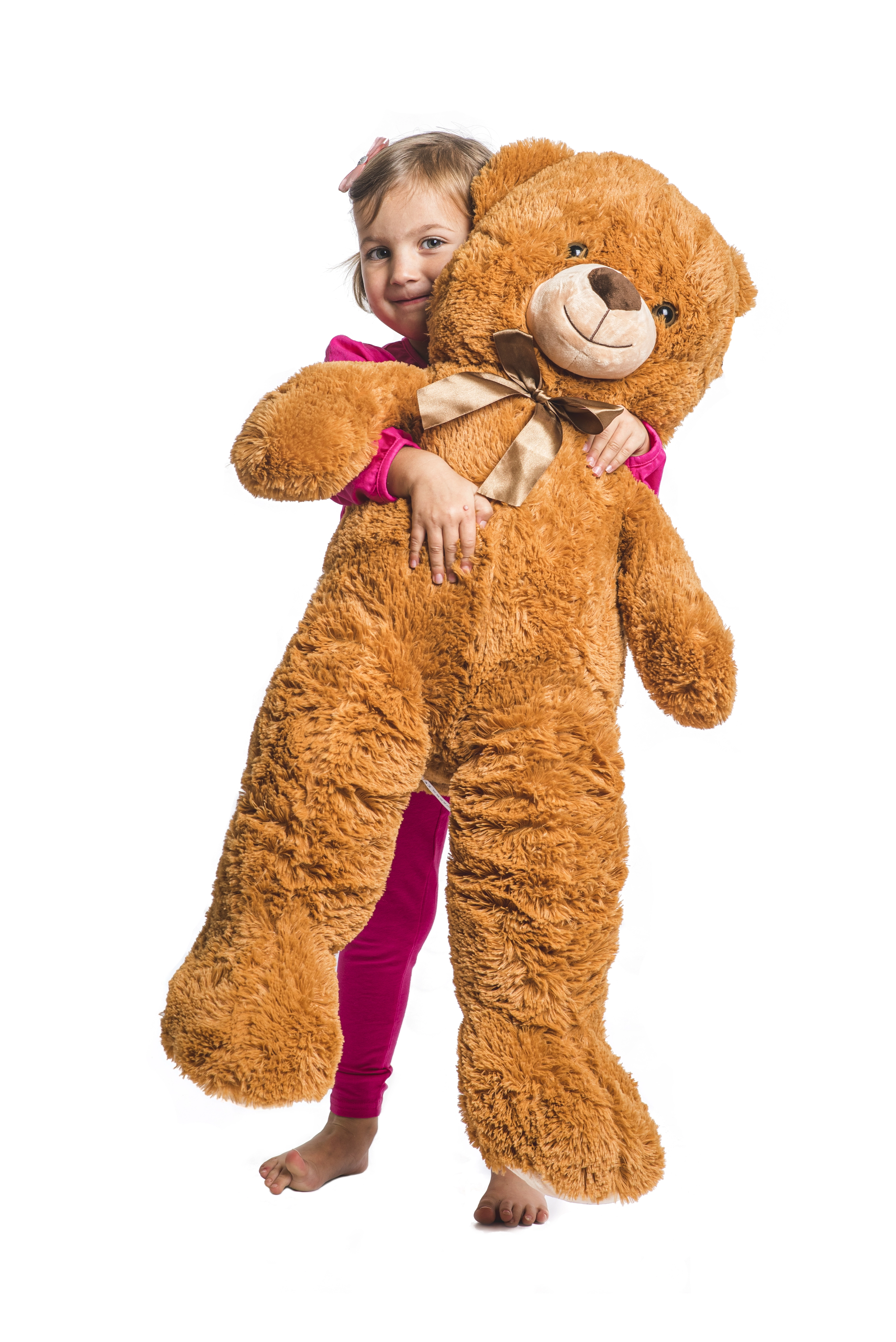 Мечето има обща дължина приблизително 90 см (около 90 × 40 × 20 см), а в седнало положение е около 55 см. Благодарение на качествената изработка запазва формата си и ще стане любим приятел за ежедневна игра и релакс.