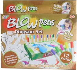 Открийте творческо забавление за малките артисти с комплекта въздушни флумастери, който включва всичко необходимо за мигновено създаване: 12 цветни флумастера, 8 шаблона, 6 листа хартия, практичен стойка с подложка и накрайник за издухване с помпичка. Идеален за деца от 4 години.<