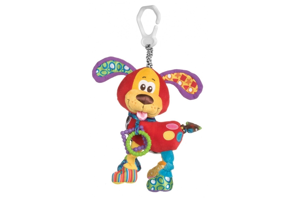 Кученцето Рексик от марката Playgro е идеалният първи приятел за вашето бебе. Със своите ярки цветове и контрастни шарки помага за развитието на сетивата на детето.