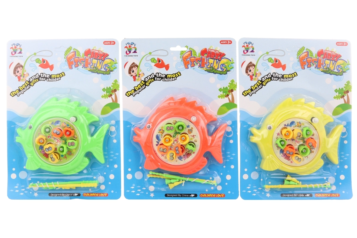 Забавна детска игра с рибки, които след навиване се въртят и отварят и затварят устички. Хванете колкото се може повече рибки и спечелете! Играта е подходяща и за един играч, съдържа 2 въдици и 8 рибки. Развива моториката, търпението и координацията око–ръка.