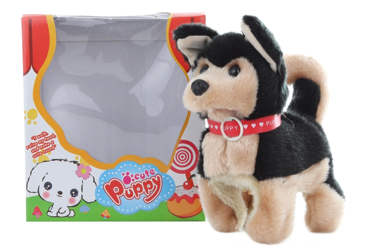 Това плюшено ходещо кученце е чудесен спътник за малките любители на животните. При включване върви и издава звуци на лай, като по този начин наподобява истинско кученце и стимулира детското въображение и интерактивната игра.