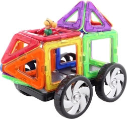 Креативен магнитен конструктор за деца, съдържащ 16 цветни елемента, с които могат да се изграждат безброй форми и обекти. Забавление и обучение в едно за деца от 3 години.