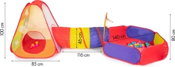 - Палатка, тунел, сух басейн, 100 пластмасови топчета, 3 велкро топчета