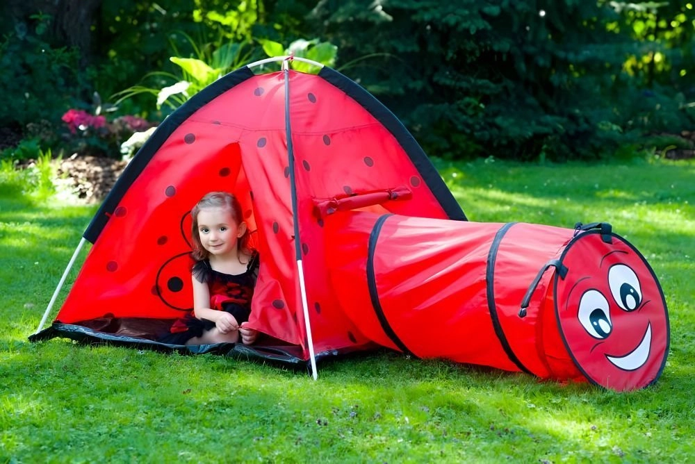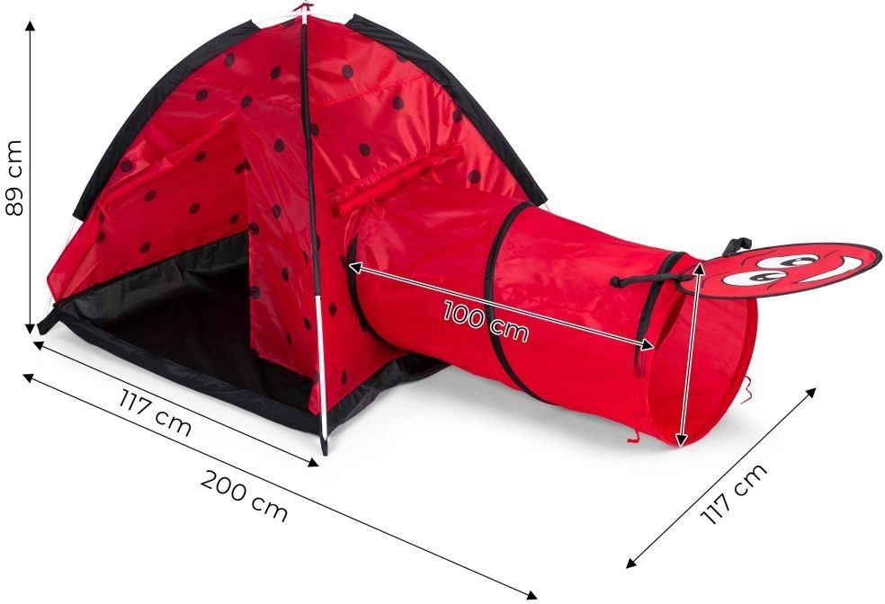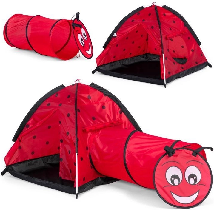 Превърнете стаята или градината в място, пълно с приключения. Детската палатка с мотив калинка насърчава децата да изследват и да играят творчески. Иглу конструкцията с един вход и възможност за свързване на тунел стимулира движение, промъкване и криене, което развива моториката и въображението. Благодарение на леката рамка палатката се пренася лесно, така че децата да й се радват навсякъде.