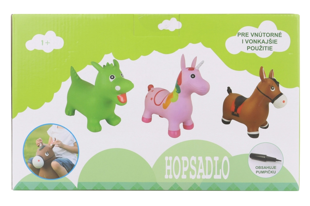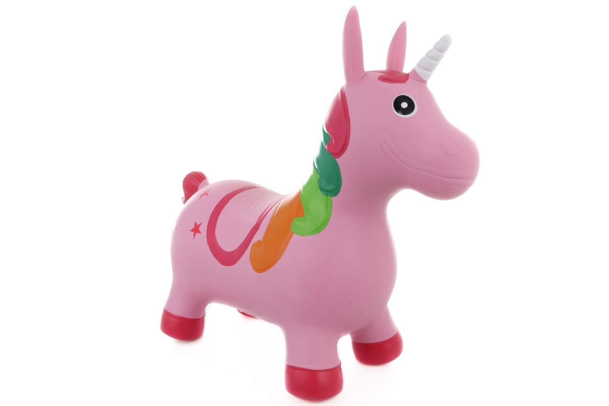 Забавно гумено скачащо играчка във форма на еднорог ще зарадва всяко дете. Предлага стабилно сядане, лесно подскачане и подпомага движението и баланса. В комплекта има помпичка, максимално натоварване 50 кг и удобна височина на седалката 27 см.