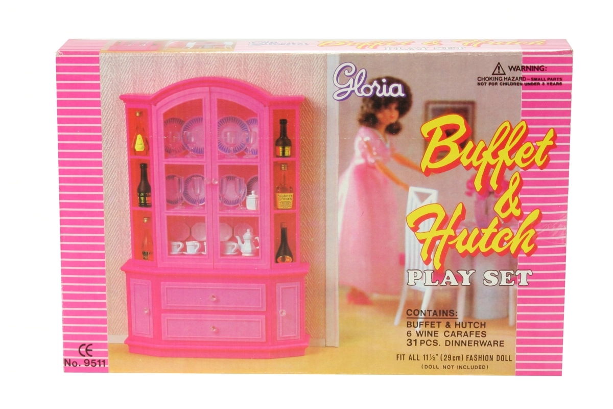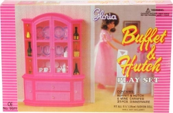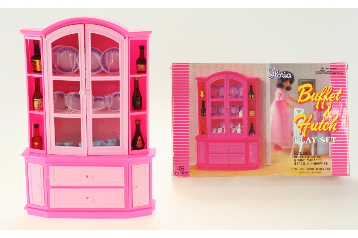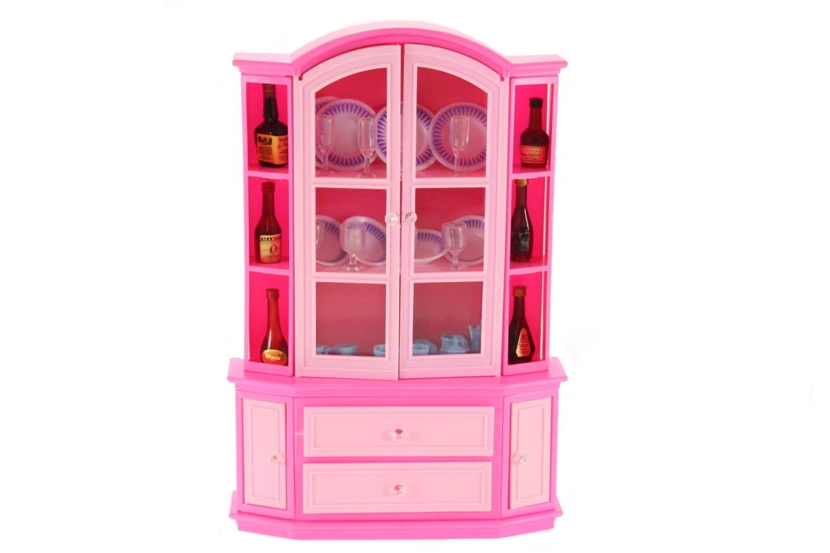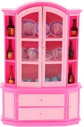 Стилен шкаф за кукли от марката Glorie предлага практично съхранение на аксесоари и атрактивен външен вид. Съдържа 2 чекмеджета, 2 шкафчета с отваряеми вратички и остъклена част с богато оборудване: 8 чинии, 8 чашки, 6 бутилки и чаен сервиз. Идеално допълнение към къщичката за кукли, което насърчава креативната игра на деца от 3 години.