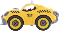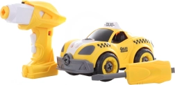 Построй, завинти и тръгвай! Този креативен комплект съчетава винтов модел на жълто такси с възможност за преобразяване в кола с дистанционно управление. Децата първо сглобяват колата с отвертка или бормашина, след това изваждат моторчето от бормашината, поставят го в колата и се наслаждават на лесно управление напред и назад.