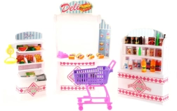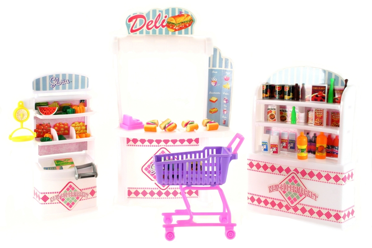 Игровият комплект Glorie супермаркет предоставя на децата цялостна среда за игра на магазин. Включва гише за бърза закуска с каса, където могат да „приемат поръчки“, и богато оборудвани рафтове с хранителни продукти. Благодарение на лесните за хващане аксесоари комплектът е идеален за развитие на фината моторика, въображението и социалните умения.