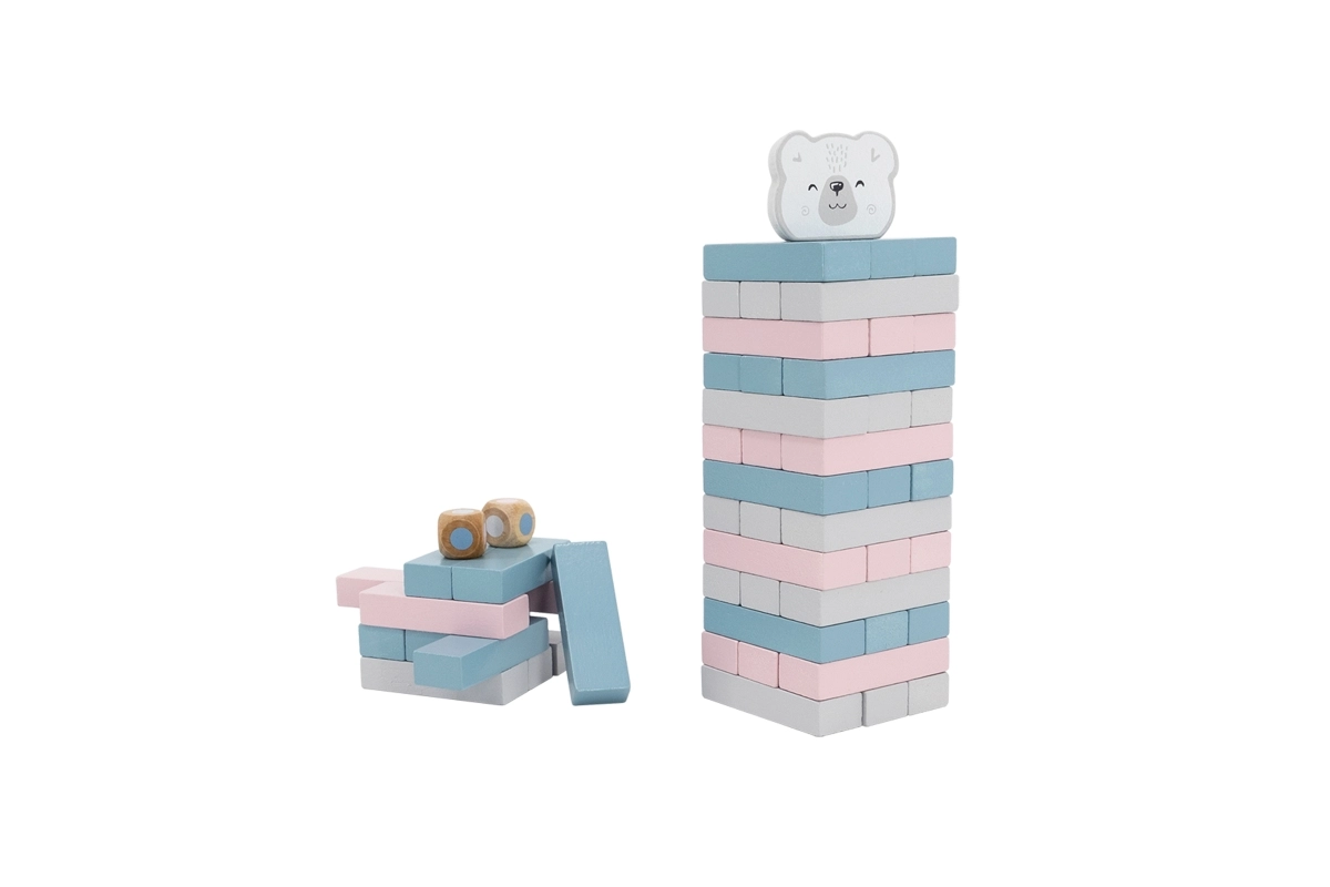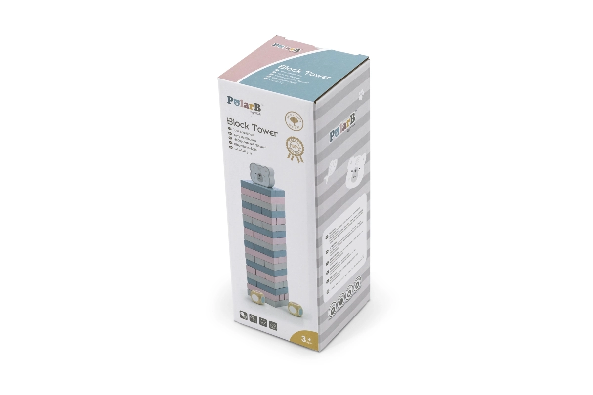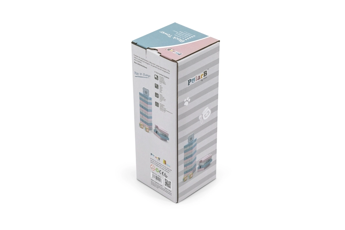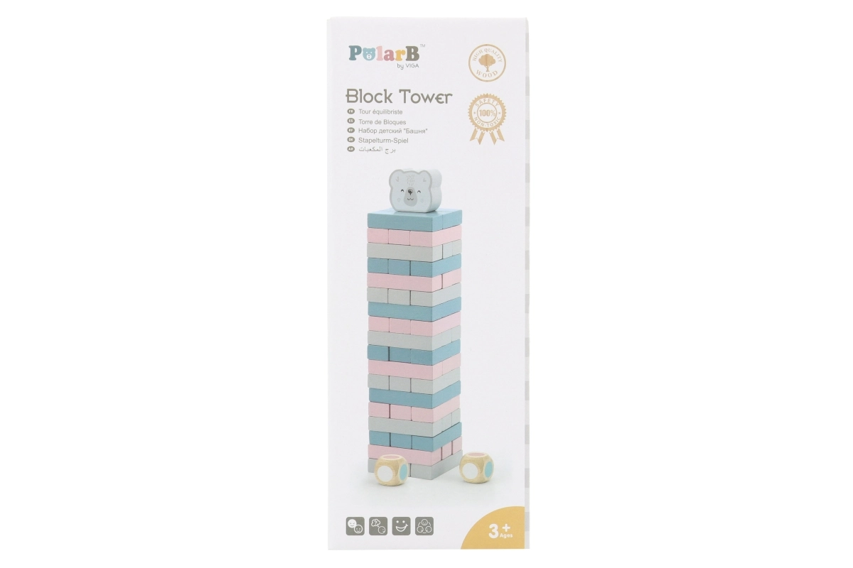 Популярната дървена кулична игра от серията PolarB на марката VIGA носи чудесно забавление за малки и големи. Играта започва с подреждане на кула от дървени блокове на масата и продължава така, че играчите последователно изваждат и поставят блокове на върха на кулата, като я правят все по-висока и по-нестабилна. Зарчетата и цветните блокове добавят допълнителен стратегически елемент. 56-те дървени блока са изработени от качествено дърво и боядисани с безопасни за деца бои. Играта не само развива фината моторика и концентрацията, но и насърчава радостта и сътрудничеството между играчите.