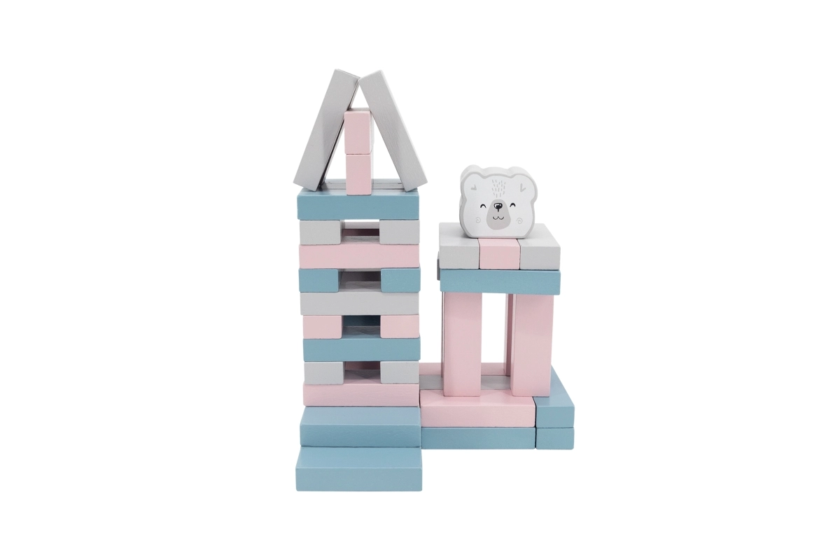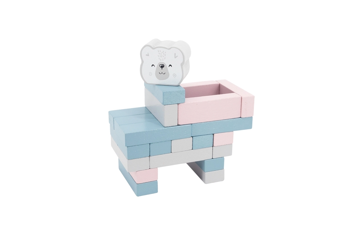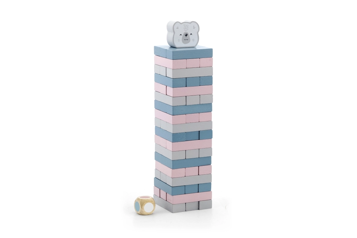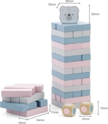 Популярната дървена кулична игра от серията PolarB на марката VIGA носи чудесно забавление за малки и големи. Играта започва с подреждане на кула от дървени блокове на масата и продължава така, че играчите последователно изваждат и поставят блокове на върха на кулата, като я правят все по-висока и по-нестабилна. Зарчетата и цветните блокове добавят допълнителен стратегически елемент. 56-те дървени блока са изработени от качествено дърво и боядисани с безопасни за деца бои. Играта не само развива фината моторика и концентрацията, но и насърчава радостта и сътрудничеството между играчите.