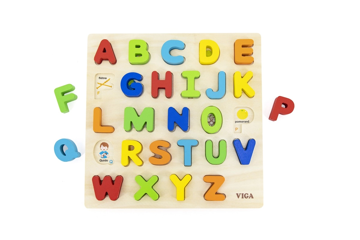 Открийте магията на ученето с тази прекрасна дървена вложка, съдържаща общо 26 части, които представят всички букви от чешката азбука.