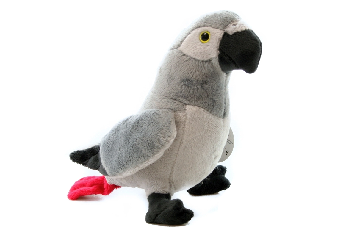 Очарователен плюшен папагал в сиво, който ще зарадва малки и големи любители на животните. Той е много мек, приятен на допир и благодарение на размер около 20 см е идеален за гушкане и като декорация в детската стая. Подходящ от 0+, безопасен за най-малките.
