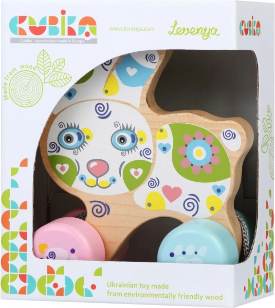 Дърпащ се заек от Cubika е идеалният спътник при пътувания за малки деца, изработен от екологично дърво и безопасни бои.