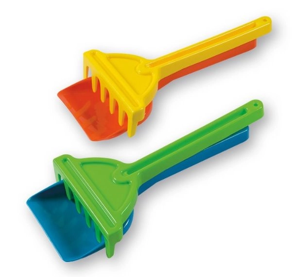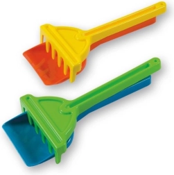 Практичен комплект за малки градинари, който съдържа лопатка и гребло, изработени от устойчива пластмаса. Идеален за игра в пясъчника и в градината. Благодарение на компактните размери се държи удобно от деца на 3+ години. Цветовото изпълнение е микс и може да варира според складовата наличност.