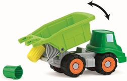 Детският камион е перфектна играчка за малки екологични изследователи. Очарователният дизайн на превозното средство гарантира забавление за децата, а подвижната каросерия позволява да се симулира истинската работа на сметосъбирачите.