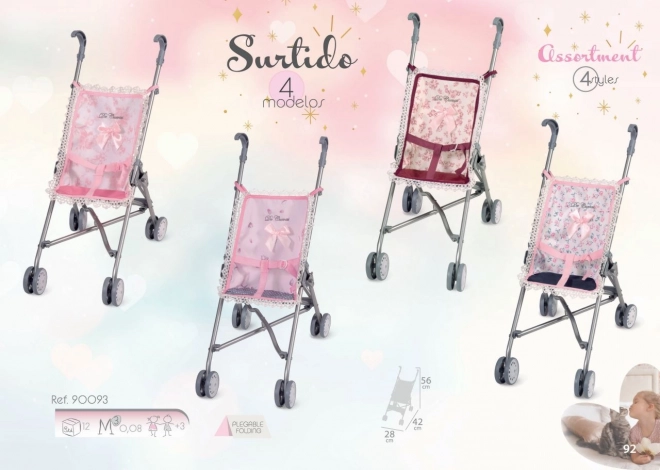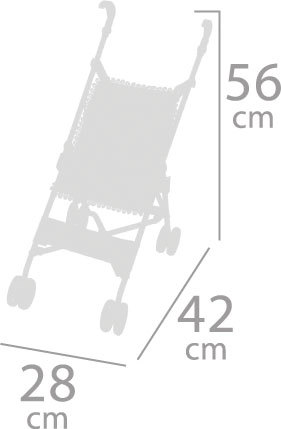 Тази сгъваема количка тип „чадър“ от колекцията DeCuevas се отличава с красив испански дизайн, прецизна изработка и много лесна маневреност. С височина до дръжката 56 cm е чудесен избор за по-малки момичета, които искат да возят любимите си кукли в безопасност и комфорт.