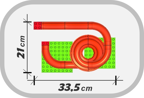 Пистата е произведена в Италия от качествени и издръжливи пластмаси и се доставя с ясна инструкция. Сглобеният модел е с размери приблизително 33,5 × 20,7 × 20,6 cm, което е подходящо и за по-малки детски стаи. При закупуване на всичките три писти от тази серия може да се създаде мега трасе с дължина до 540 cm.