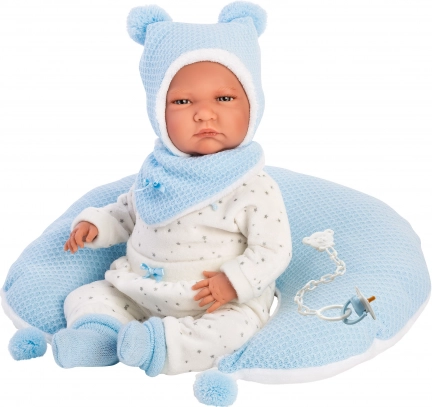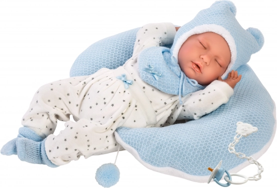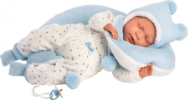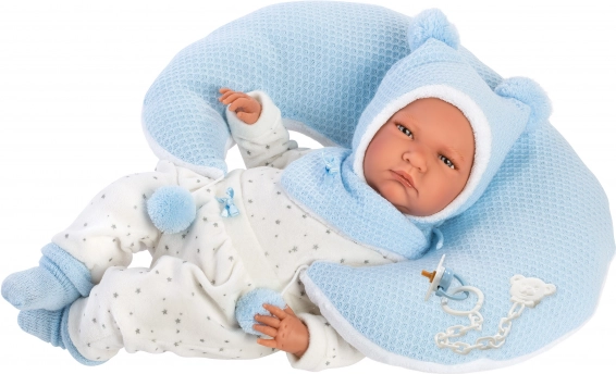 Този стилен комплект дрехи за кукла NEW BORN LLORENS с размер 40–42 см предлага всичко необходимо за креативна игра и грижа за „бебе“. Меките текстили в приятно синьо‑бяло съчетание и детайлната изработка осигуряват чудесен вид и удобно обличане. Практичната възглавница за кърмене подпомага реалистичната игра и фината моторика.