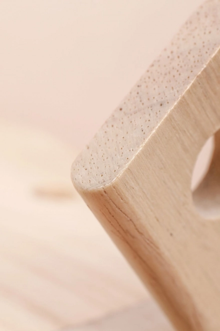 Качествено дърво в комбинация с устойчиви елементи, заоблени ръбове и гладки повърхности за безопасна детска игра.