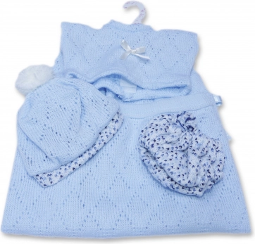 Дрешките за бебе-кукла с размер 26 см включват жилетчица, шапчица и гащички. Те са създадени, за да осигурят максимален комфорт и елегантност по време на игра. Комплектът съдържа и финo плетено одеялце, което допълва цялостната визия. Комплектът е опакован в прозрачен плик с пластмасова или картонена закачалка.