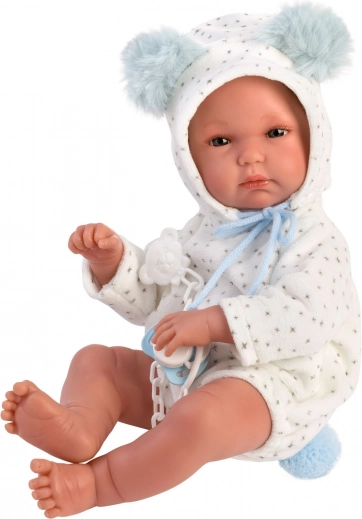Подарете на своята кукла NEW BORN стил и комфорт. Този внимателно съчетан комплект включва меко облекло в синьо-бяла гама с мотив звезди и практичен висящ хамак, който създава уютен кът за куклата. Идеален за игри на грижа и приспиване на куклата.