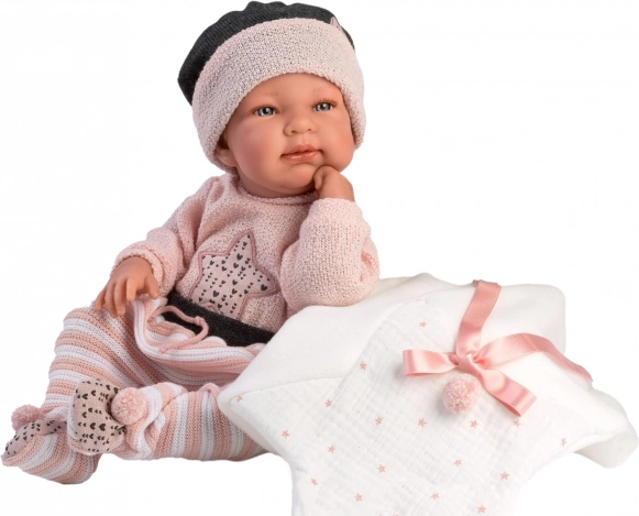 Стилен 3-частов комплект облекло за кукла New Born LLORENS с размер 43–44 см впечатлява с реалистичен вид и качествена изработка. Комплектът включва съчетани елементи и декоративно одеялце, идеални за преобличане и ролеви игри. Произведено в Испания, опаковано с практична закачалка. Качествени материали, прецизно ушиване и перфектна кройка за кукли със стандартен размер.