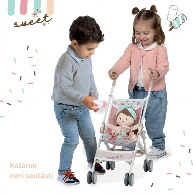 Плюшената кукла Sweet е част от популярна колекция с игриви мотиви на тортички и сладолед. Благодарение на мекото тяло е безопасна и подходяща и за креватчето. Ниското тегло и компактните размери я правят перфектен спътник както за път, така и у дома.