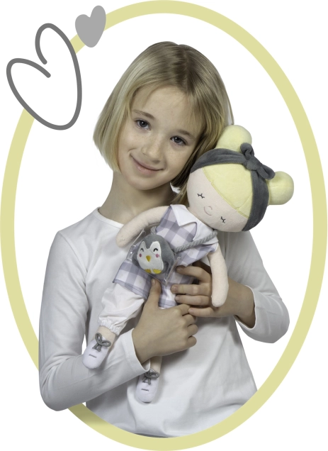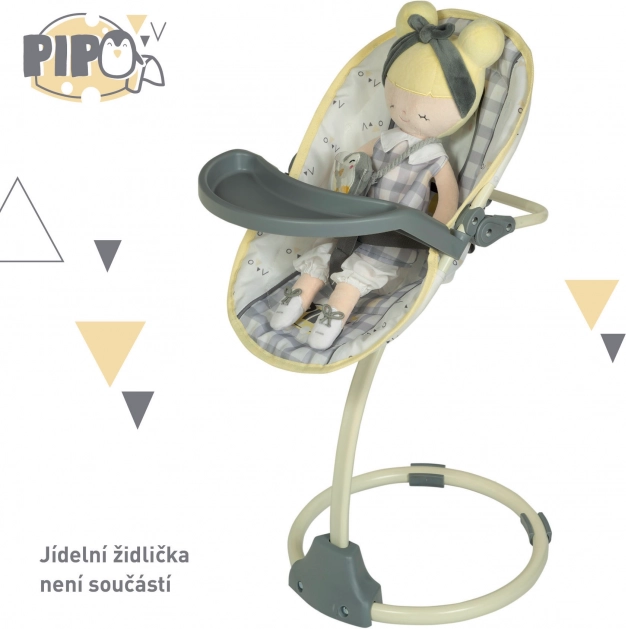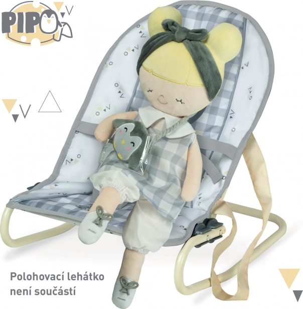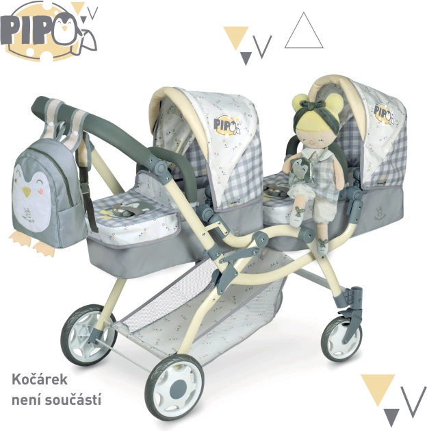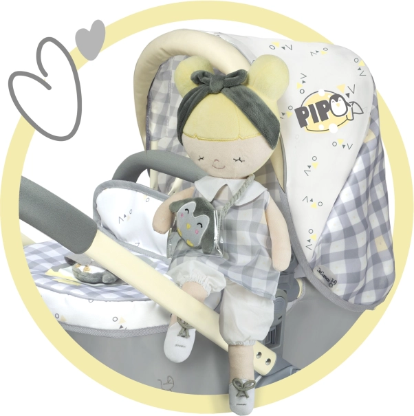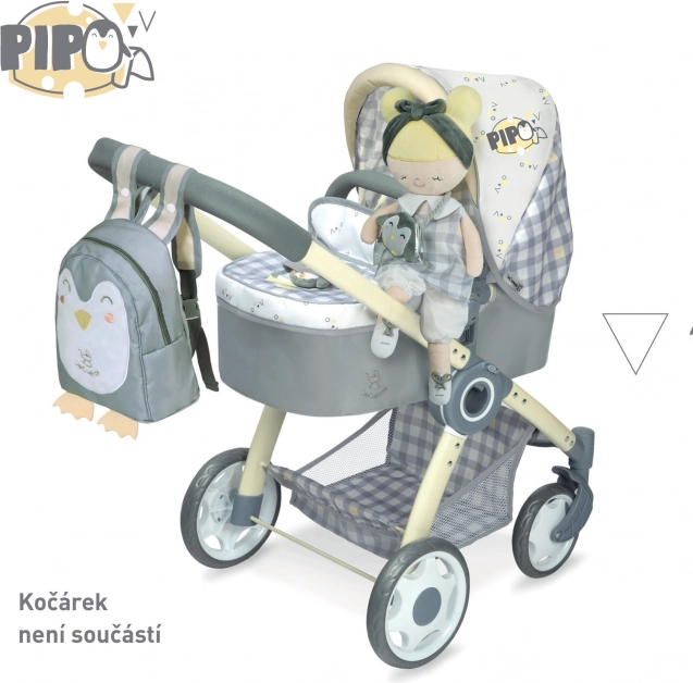 Куклата Пипо е част от страхотна колекция от 2022 г., която ще обикнете. Тази колекция включва колички, мебели за кукли и други аксесоари за малките домакини. Характеристичният дизайн със сиво-бяло каре и нежни жълти акценти с мотив пингвин ще отговори на очакванията на всяка малка принцеса.