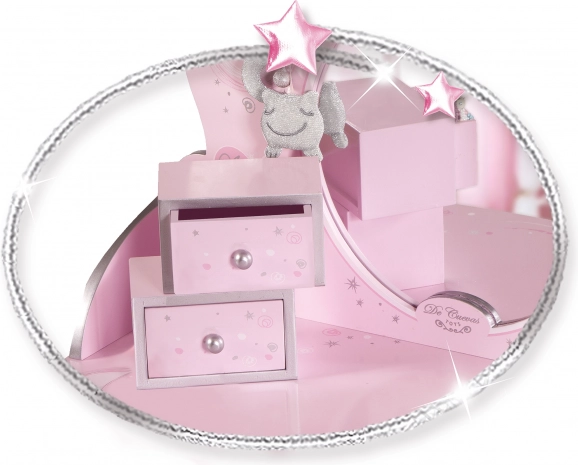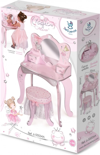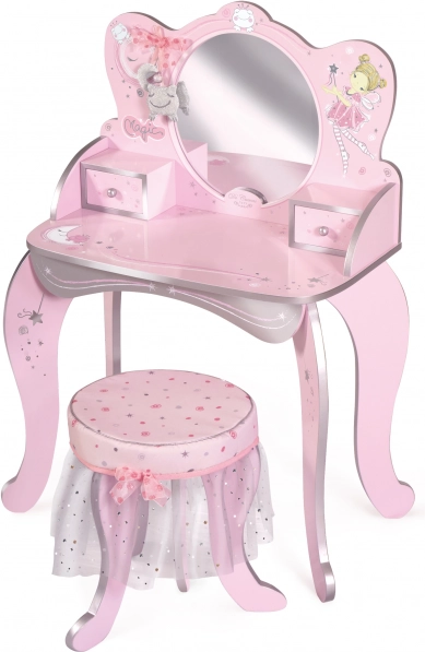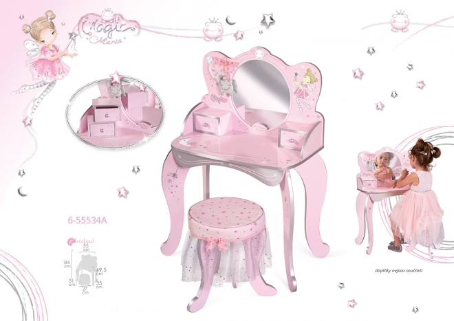 Тази дървена тоалетка е вдъхновена от приказките и е идеалното допълнение към всяка момичешка стая. Декорирана е с красиви принтове и включва