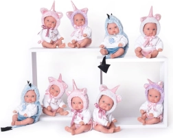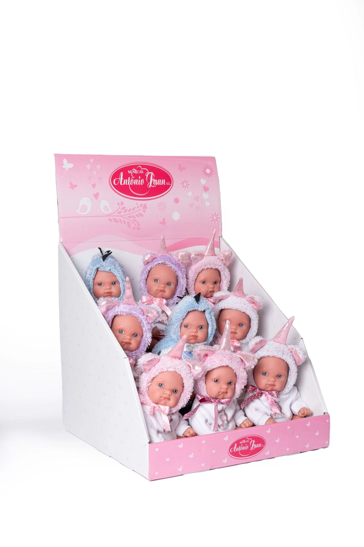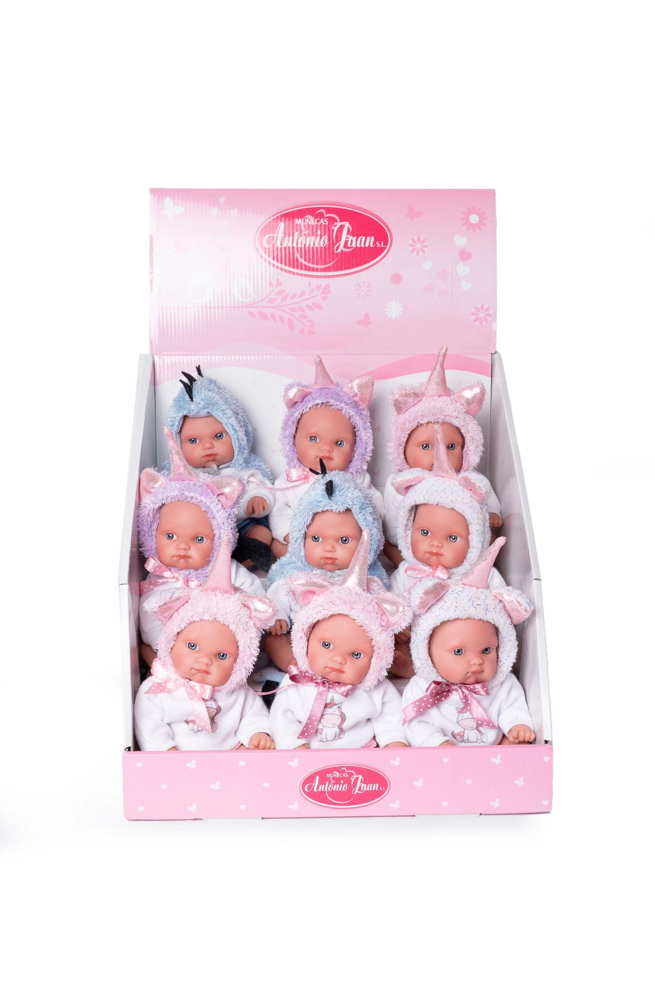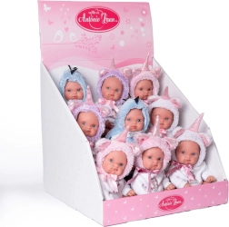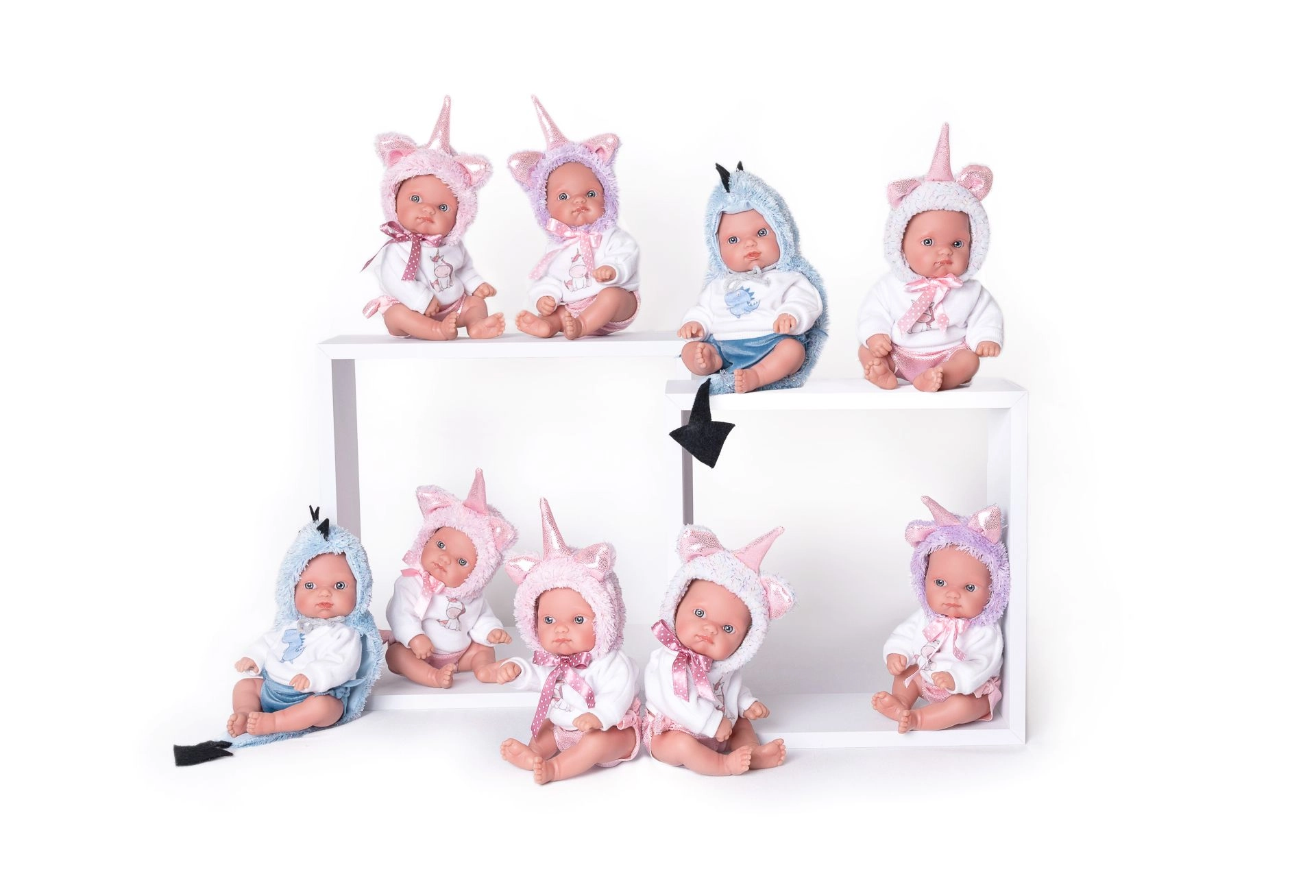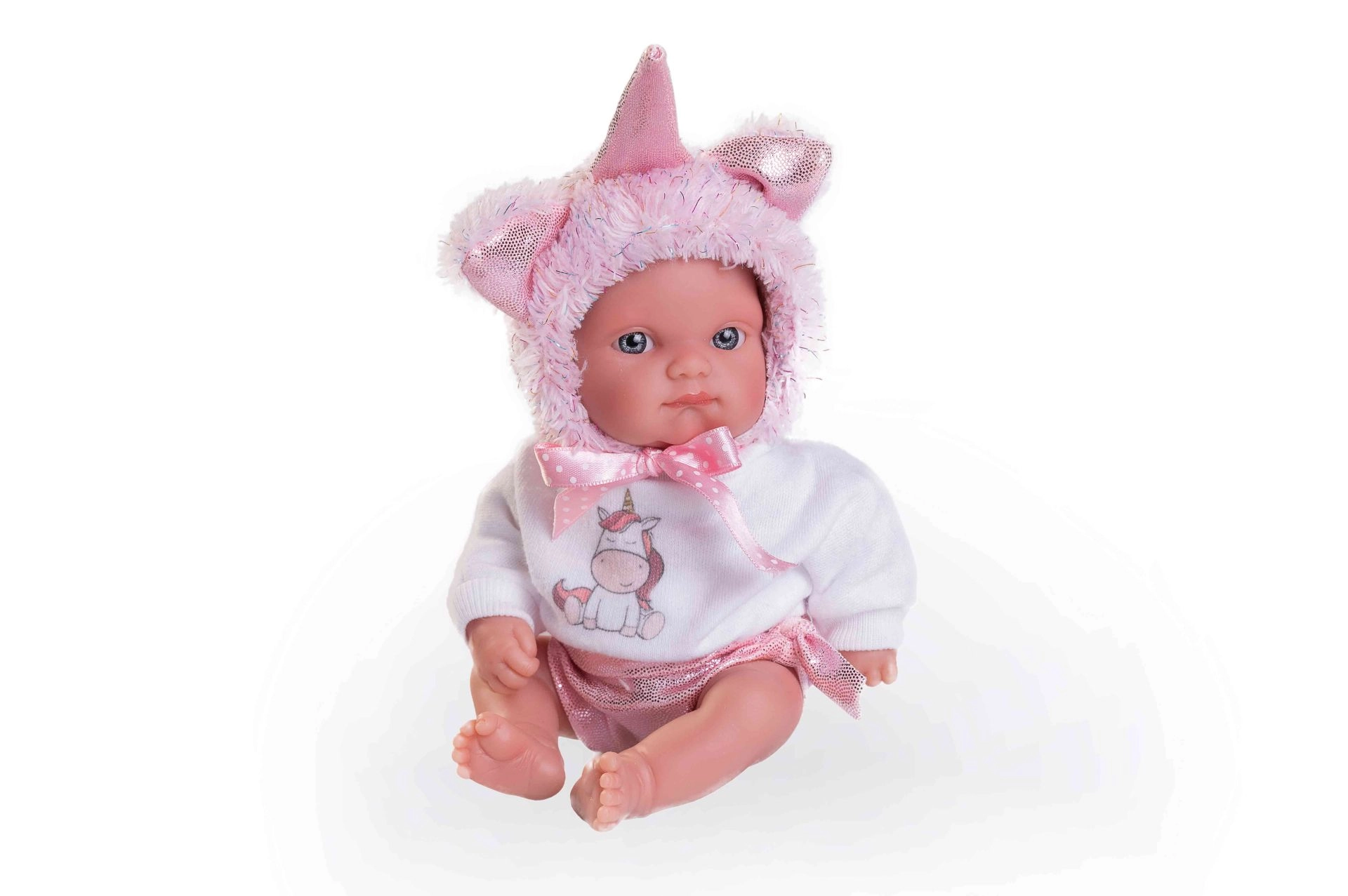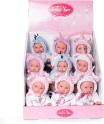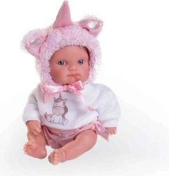 Открийте куклата бебе ANTONIO JUAN във вариант Еднорог розов – автентично изработено новородено с изцяло винилово тяло, което е приятно на допир и лесно за поддръжка. Реалистични черти като бебешки гънки и детайлна изработка на половите белези подпомагат естествената игра и развитието на емпатията.