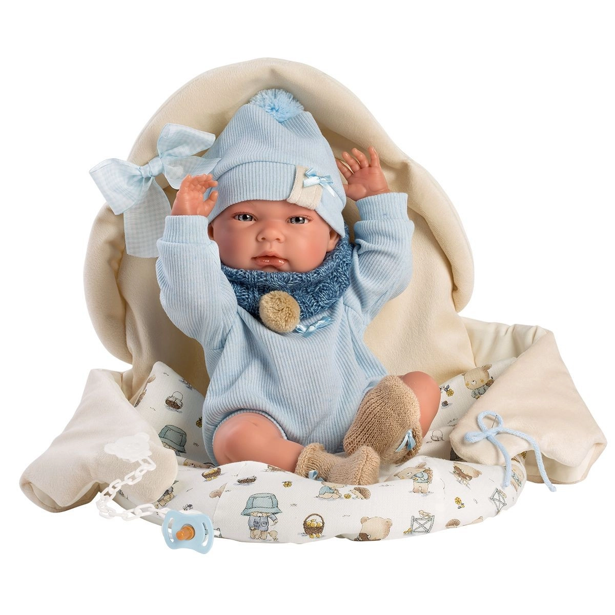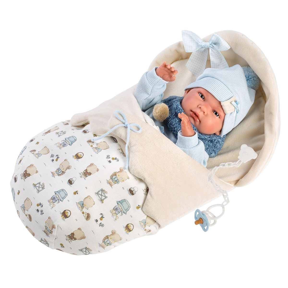 Комплектът включва стилни дрехи, включително боди, шапчица, чорапки, шалче и спален чувал, заедно с декоративен биберон. Всяка кукла е внимателно опакована в декоративна кутия, за да бъде всяко разопаковане преживяване.