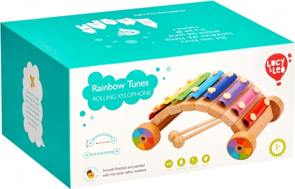 Дъговият ксилофон LUCY & LEO съчетава музикален инструмент и подвижна играчка в едно. Металните ламели в цветовете на дъгата приканват към първи мелодии, а стабилната дървена основа с колелца насърчава активната игра. Децата естествено се учат да различават тонове, да усещат ритъм и да развиват координацията ръка–око.