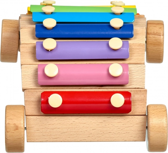 Дървеното шаси с колелца позволява ксилофонът да се дърпа или бута, което прави ученето на музика още по-забавно.