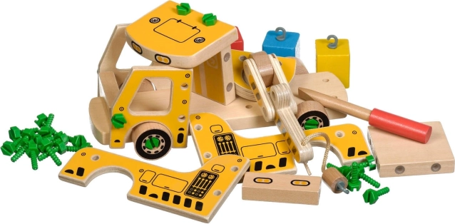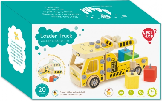 Влезте в света на строителните умения с дървения конструкторски комплект автокран от Lucy & Leo. Този комплект е идеален за малки строители, които искат да развиват своите моторни способности и творчество с приятни на допир дървени елементи.